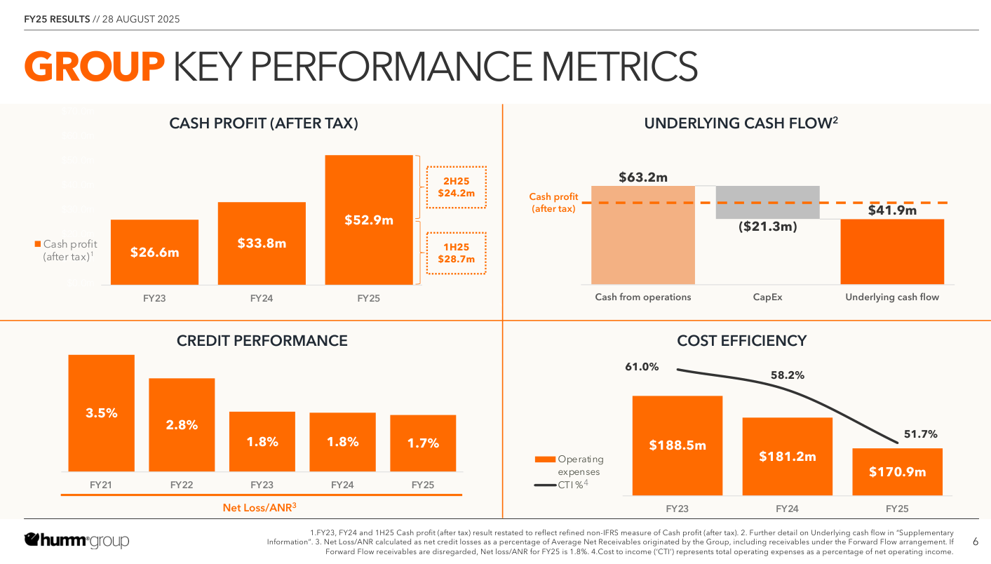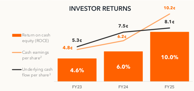 In FY25 (Year ending on 30 June 2025), HUMM earned 52.9$m after tax cash profit of 10.2c per share. The stock already looks cheap on those numbers, and that’s despite earnings still being weighed down by headwinds that ease in 2026.