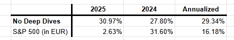 I’m of course very happy with this year’s results. And I even managed to do it while reducing my portfolio turnover from 108% in 2024 to 61.5% in 2025. Still high, but progress for me. I’m often tempted by the new latest shiny pitch and am actively working on reducing the amount of transaction I do every year.